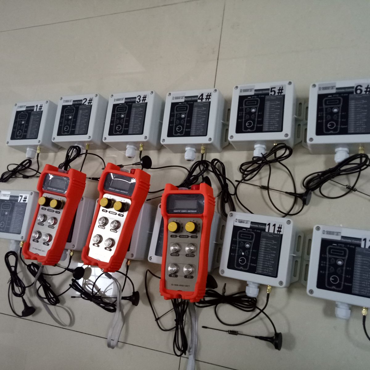 選好接收器編碼,并確認,顯示已選中后,便可以實現(xiàn)對該編號的接收器的遙控操作了! 發(fā)射器和接收器的數(shù)量、遙控器的具體控制要求、屏幕顯示內(nèi)容,通訊方式、控制距離等。都可以根據(jù)客戶要求定制哦!
