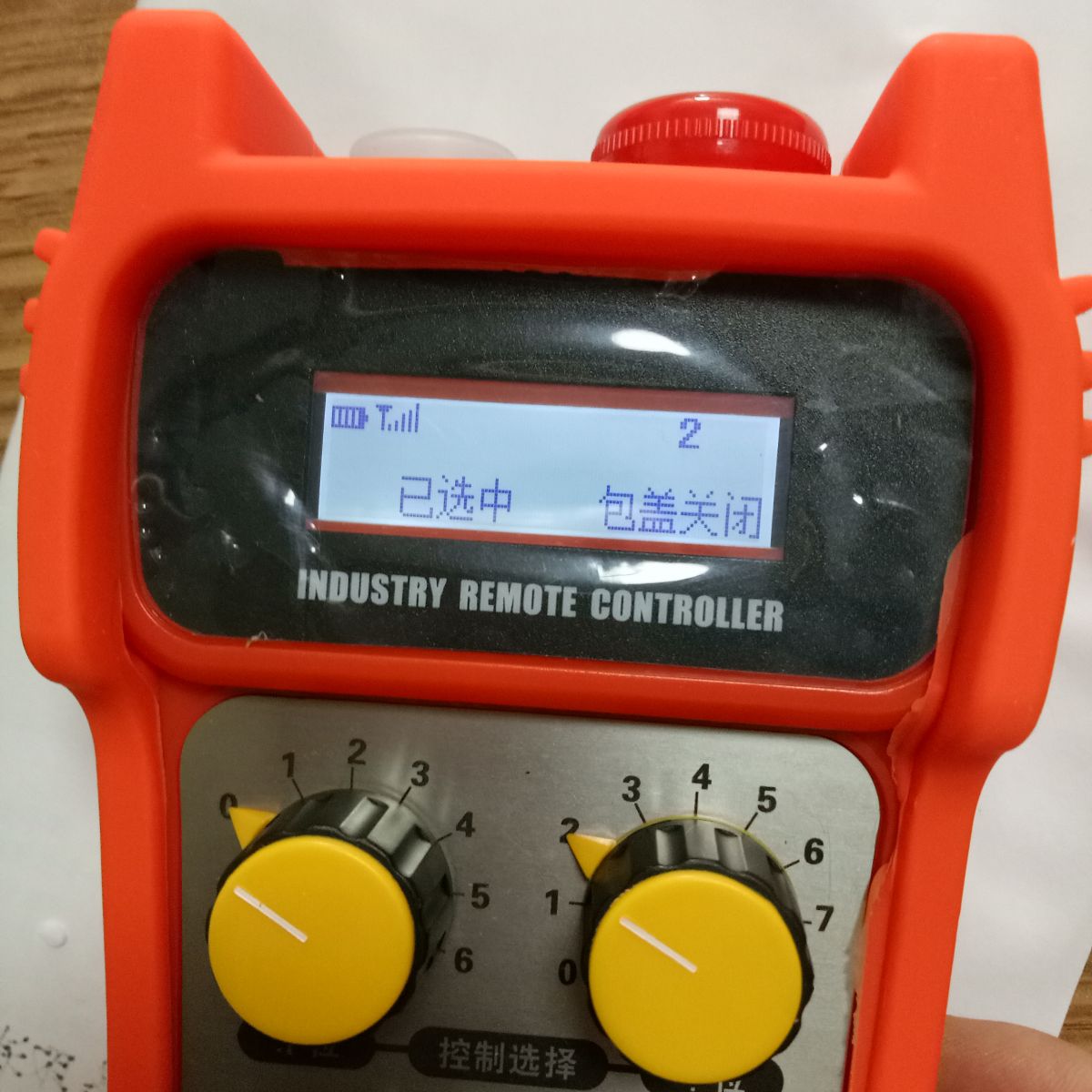 RJD06-XH選號作業(yè)遙控器是我公司針對流水作業(yè)設(shè)備開發(fā)的一款專用遙控器。實現(xiàn)1~n個發(fā)射器對1~m個接收器進行控制。 任意一個發(fā)射器都可以選擇任意一個接收器進行控制,每個發(fā)射器一次只能選擇一個接收器進行控制,每個接收器同一時刻只能被一個發(fā)射器選擇。也就是發(fā)射器的選擇具有排他性,一旦某個發(fā)射器選擇了其中一個接收機,該接收機便不再接受其他發(fā)射器的選號。 如果客戶需要,也可以設(shè)定全部或者其中的某幾個發(fā)射器可以共享接收器哦! 選號方式:發(fā)射器開機后,通過最上邊一排的兩只編碼開關(guān),進行選號,左邊一只編碼開關(guān)設(shè)定的是接收器編碼的十位數(shù)。右邊的一只設(shè)定接收器編碼的個位數(shù)。例如選擇2號接收器,左邊的旋鈕選擇0,右邊的旋鈕選擇2,屏幕顯示2號。 未按確認鍵時顯示未選中 如果選擇26號接收器,則左邊的旋鈕調(diào)到2,右邊的旋鈕調(diào)到6,屏幕顯示26。按確認鍵,進行選擇確認后,如果在排他模式下,該接收器未被其它發(fā)射器選中,則屏幕顯示已選中。如果已經(jīng)被其它發(fā)射器選擇。則屏幕顯示已占用。如果在共享模式設(shè)定下。可以隨意選擇。 如果要釋放對某個接收器的控制并選擇其它編號的接收器,可以按取消按鍵后,再重新進行選擇操作。